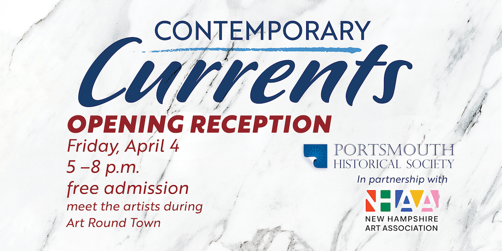 Join Portsmouth Historical Society and the New Hampshire Art Association for the opening reception of Contemporary Currents during Art Round Town on Friday, April 4, from 5–8 PM. This dynamic exhibition explores themes of advocacy and experimentation in art, offering a contemporary response to Seacoast artist Cabot Lyford’s works on view in the adjoining gallery.