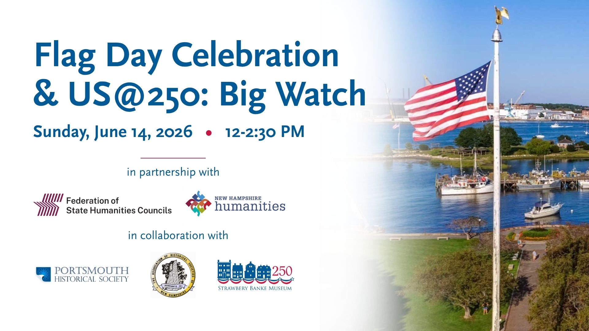 Strawbery Banke 14 Hancock Street, Portsmouth, NH, United StatesCelebrate Flag Day with a meaningful afternoon of community, history, and civic engagement. Watch a short excerpt from THE AMERICAN REVOLUTION by Ken Burns.